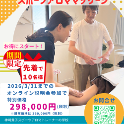 【10名様限定】九州スポーツアロママッサージ講習会・<2026/3/31まで>オンライン説明会参加で、講習費が298,000円(税別)※6万円以上もおトク!