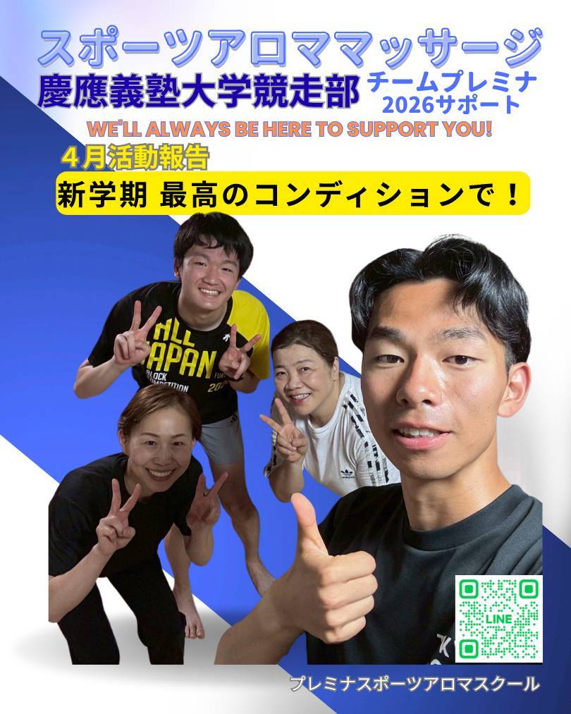 4/6は、慶應大学競走部の陸上選手へスポーツアロママッサージでプレミナ卒業のスポーツアロマトレーナーたちが、サポートを行いました!