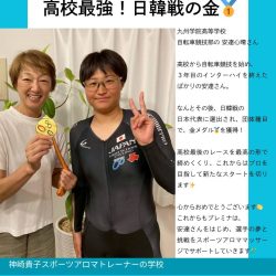 🏅✨嬉しいご報告✨🏅 長年スポーツアロママッサージでサポートしてきた九州学院高等学校 自転車競技部の 安達心晴さん が、プレミナ校長・神崎のもとへ、素敵な報告に来てくれました🚴♀️💨 高校から自転車競技を始め、3年目の