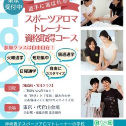 -> もっと見る 【東京校】12月スタート|★選手に選ばれる「スポーツアロマトレーナー」資格取得コース