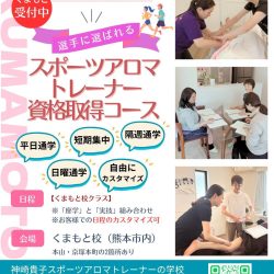 -> もっと見る 【くまもと校】12月スタート|★九州から未来のアスリートを支える! プロが選ぶ「スポーツアロママッサージ」を習得~「スポーツアロマトレーナー」資格取得コース
